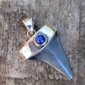 1 3/16" - .925 Sterling Silver Capped Extinct Great White Shark Tooth with Lapis Stone$90.00