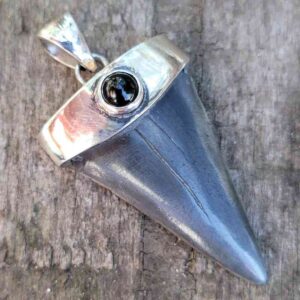 Extinct Great White Tooth With Silver Cap and Stone – EXGWS-7