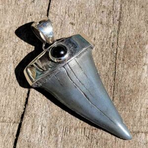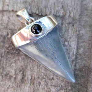 Extinct Great White Tooth With Silver Cap and Stone – EXGWS-2
