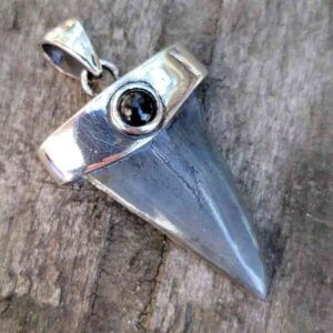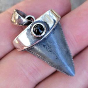 Extinct Great White Tooth With Silver Cap and Stone – EXGWS-3