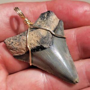 Gold Wire Wrapped Megalodon Tooth Necklace Pendant – MEGGFWPEND-3