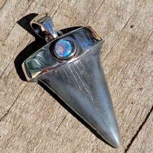 1 1/4" - .925 Sterling Silver Capped Extinct Great White Shark Tooth with OPal Stone$90.00