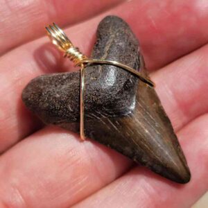 Gold Wire Wrapped Megalodon Tooth Necklace Pendant – MEGGFWPEND-6