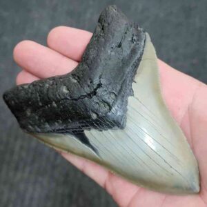 Polished 5 Inch Megalodon tooth with black root and tan enamel$470.00 Add to cart -