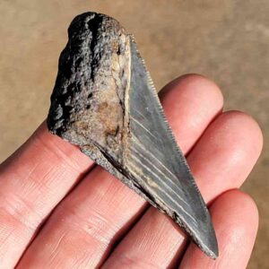 2 7/8 Inch Megalodon tooth, 50% complete, dark brown root and gray enamel.$25.00 Add to cart -