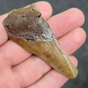 3 3/4 Inch Megalodon tooth, 50% complete, brown root and tan enamel.$35.00 Add to cart -