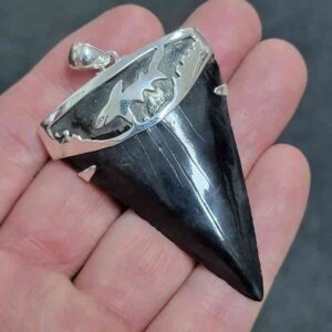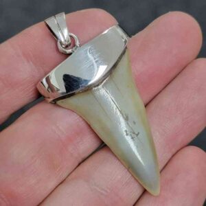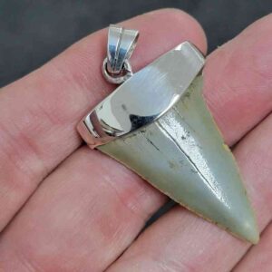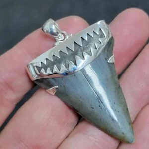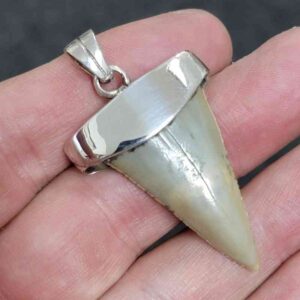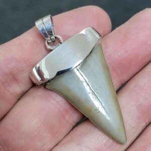 . 925 Sterling Silver Capped Extinct Great White Shark Teeth Necklace Pendant – SLVRCAPEXGW-19