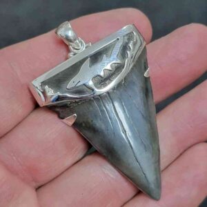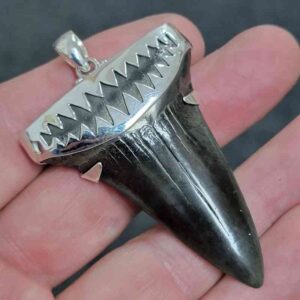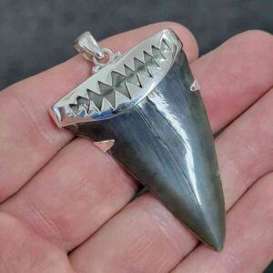 . 925 Sterling Silver Capped Extinct Great White Shark Teeth Necklace Pendant – SLVRCAPEXGW-25