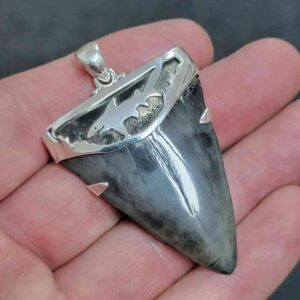 . 925 Sterling Silver Capped Extinct Great White Shark Teeth Necklace Pendant – SLVRCAPEXGW-13