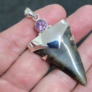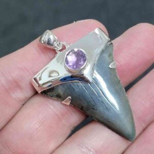 .925 Sterling Silver Capped Extinct Great White Shark Teeth with Amethyst Mineral$250.00 Add to cart -
