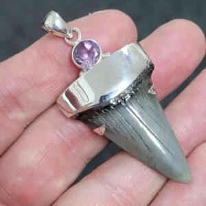 .925 Sterling Silver Capped Extinct Great White Shark Teeth with Amethyst Mineral$215.00 Add to cart -