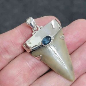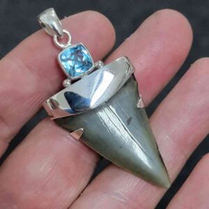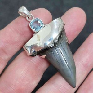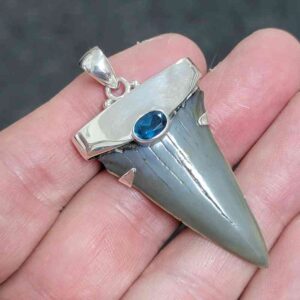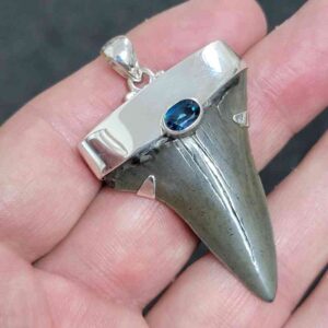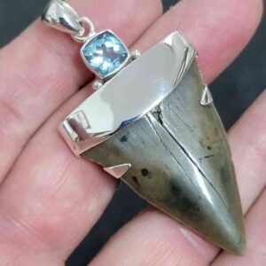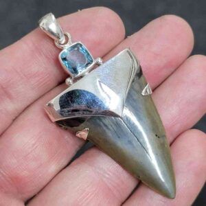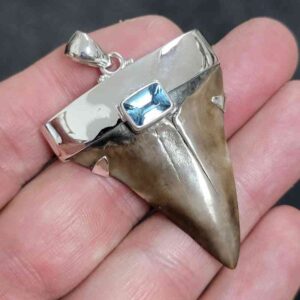.925 Sterling Silver Capped Extinct Great White Shark Teeth with Blue Topaz Mineral$250.00 Add to cart -