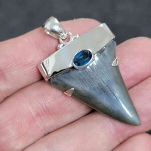 .925 Sterling Silver Capped Extinct Great White Shark Teeth with Sapphire Mineral.$215.00 Add to cart -