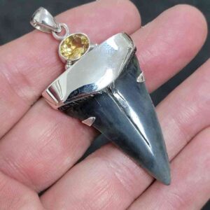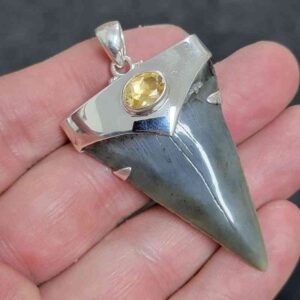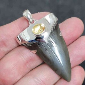 .925 Sterling Silver Capped Extinct Great White Shark Teeth with Citrine Mineral.$250.00 Add to cart -