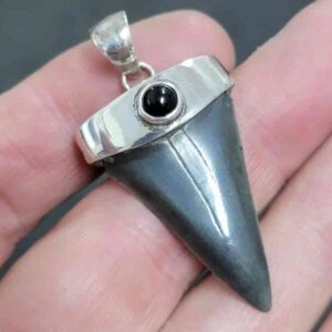 .925 Sterling Silver Capped Extinct Great White Shark Teeth with Sapphire Mineral.$195.00 Add to cart -