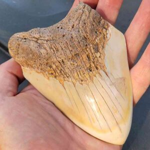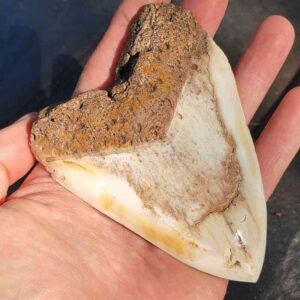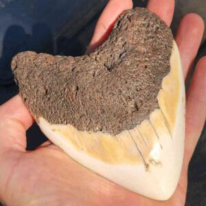 4 1/8 Inch polished South Pacific Megalodon tooth with light brown root and ivory enamel$250.00 Add to cart -