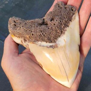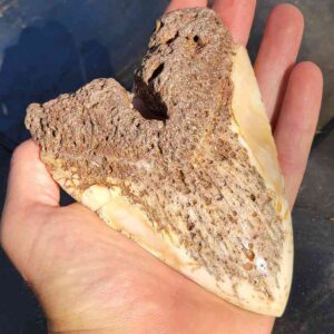 4 3/4 Inch polished South Pacific Megalodon tooth with tan root and tan enamel$275.00 Add to cart -