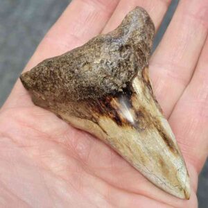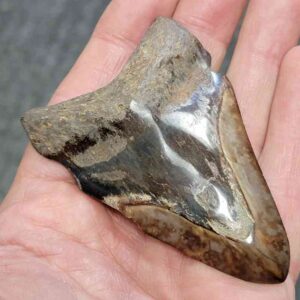 3" - 90% Complete Polished Megalodon Tooth with Dark Brown Root with Gray Enamel$105.00 Add to cart -