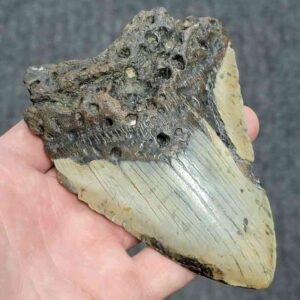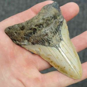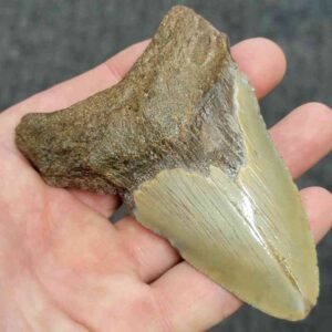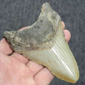5" - 90% Complete Bargain Megalodon Shark Tooth with Dark Brown Root with Gray Enamel$180.00 Add to cart -