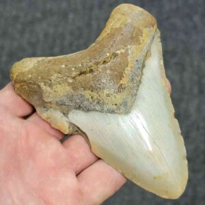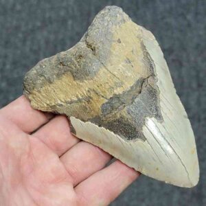 4 3/4" - 90% Complete Bargain Megalodon Shark Tooth with Mottled Brown Root with Gray Enamel$165.00 Add to cart -