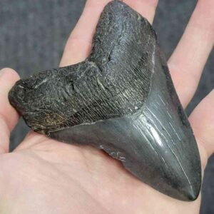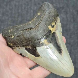 5" - 90% Complete Bargain Megalodon Shark Tooth with Dark Brown Root with Gray Enamel$215.00 Add to cart -