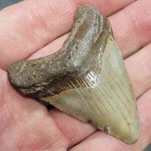 2 1/4" - Megalodon Shark Tooth with Brown Root with Tan Enamel$50.00