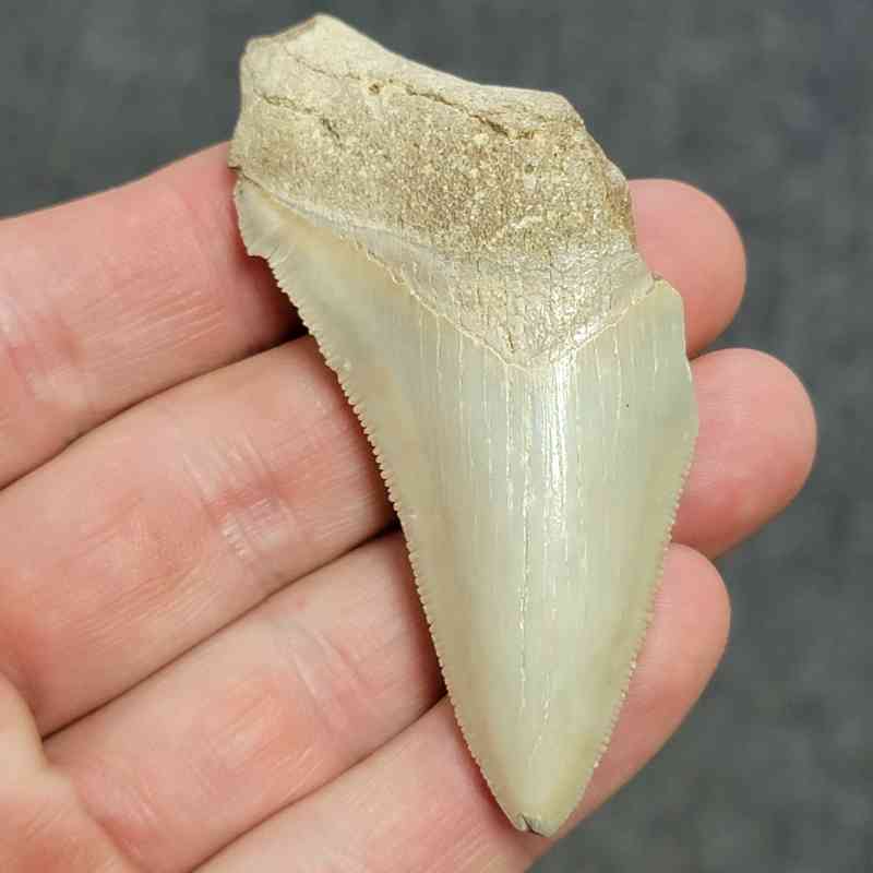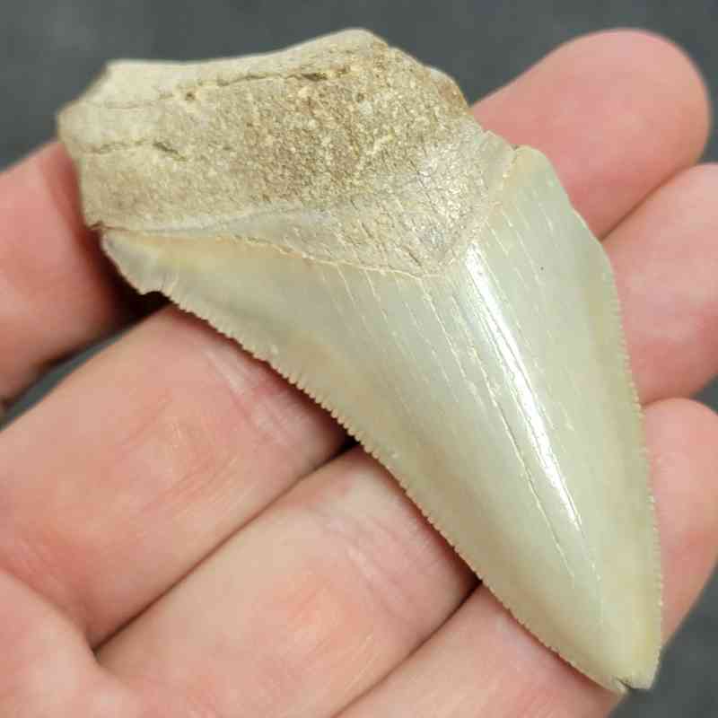 2 15/16″ – 75% Complete Megalodon Shark Tooth with Tan Root with Tan Enamel