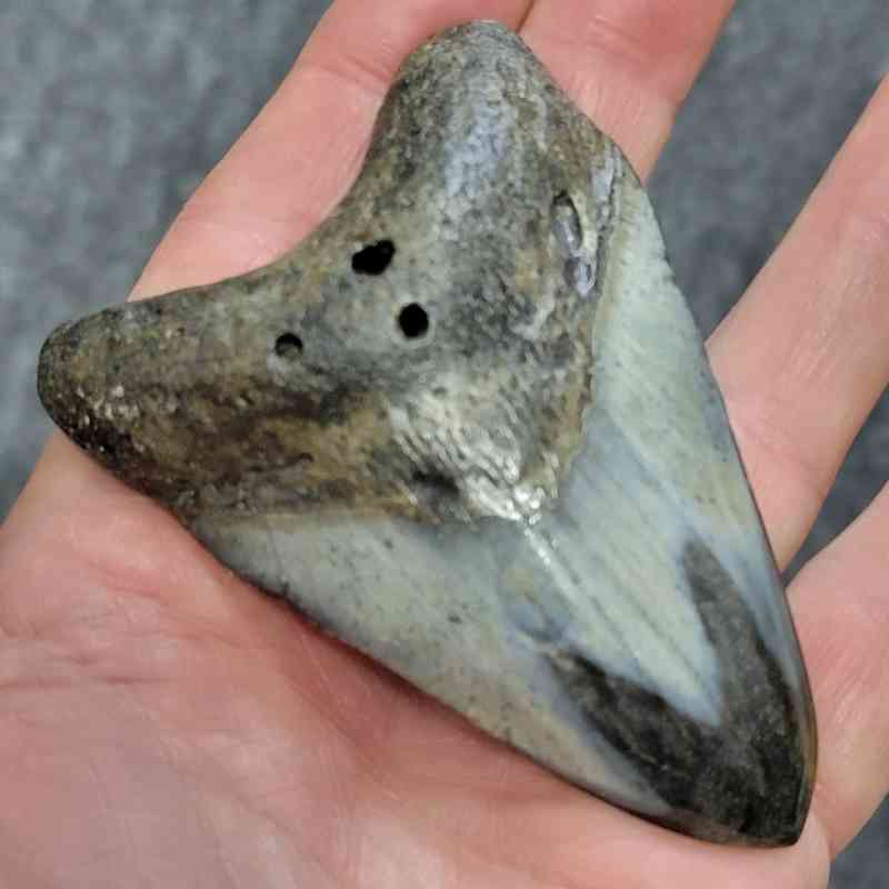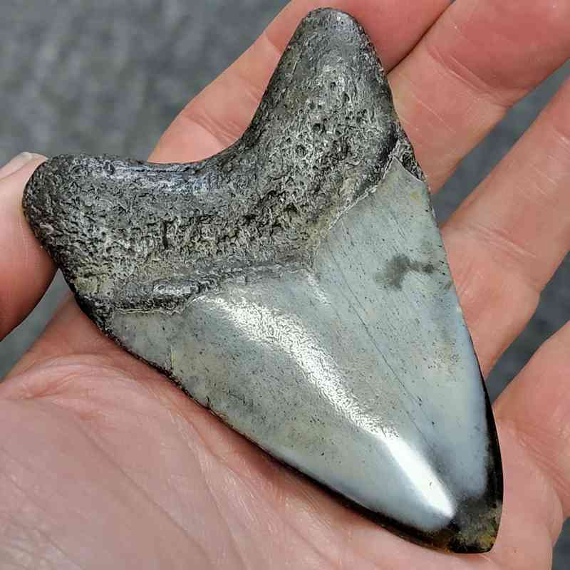 3 3/8″ – Polished Megalodon Tooth with Dark Brown Root with Gray Enamel – Manager’s Choice