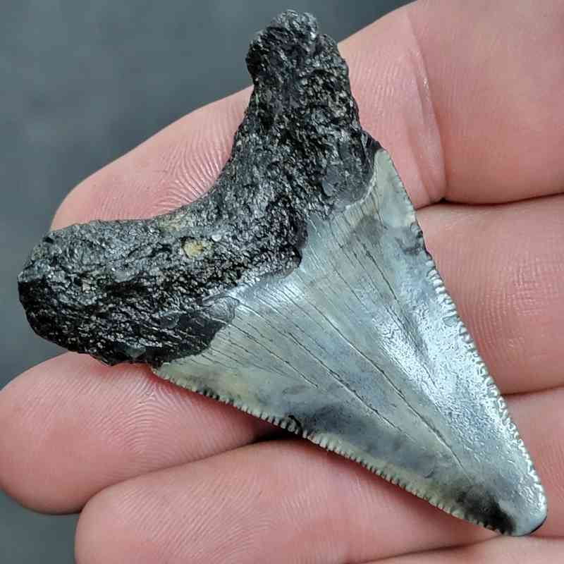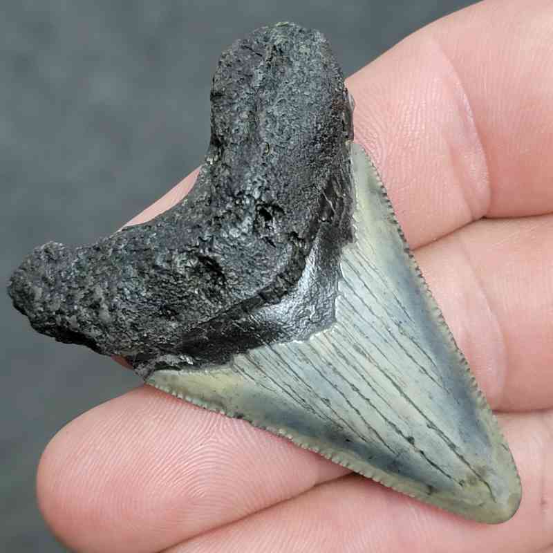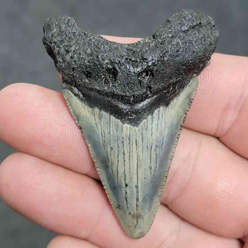 2 1/4 Inch Megalodon tooth with black root and light gray enamel Collector grade