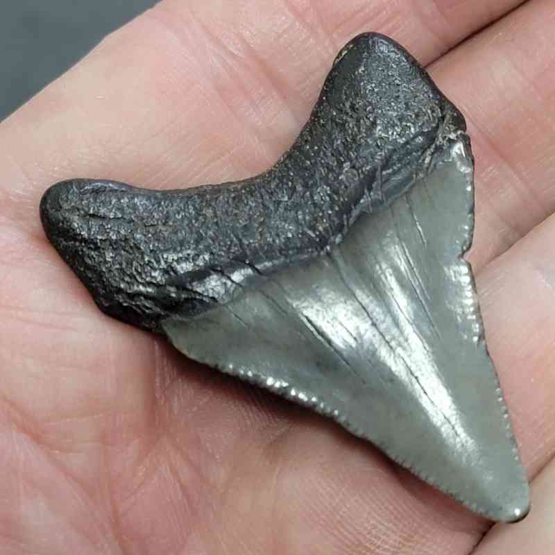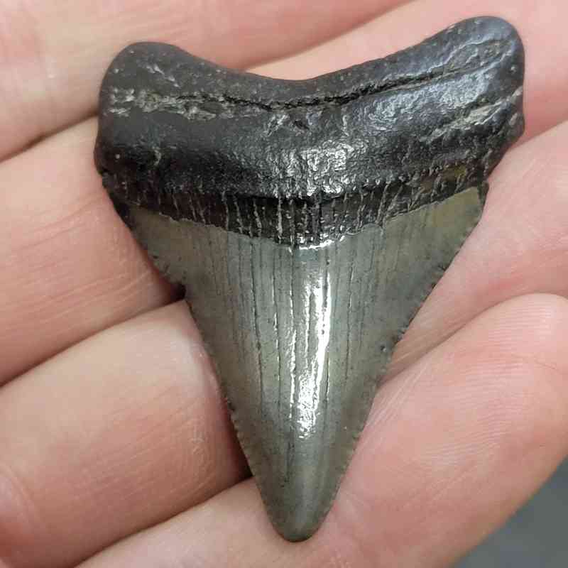 2″ – Megalodon Shark Tooth with Dark Brown Root with Gray Enamel