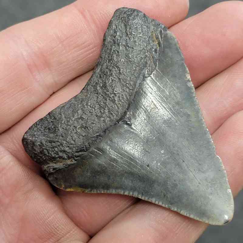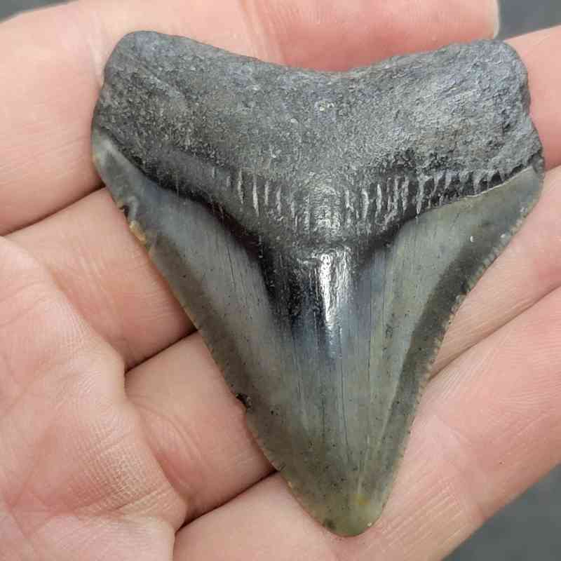 2 3/8″ – Megalodon Shark Tooth with Dark Brown Root with Gray Enamel