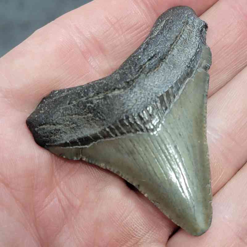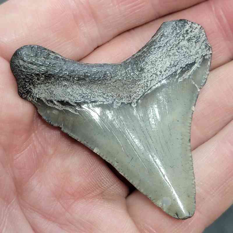 2 1/4″ – Megalodon Shark Tooth with Dark Brown Root with Gray Enamel