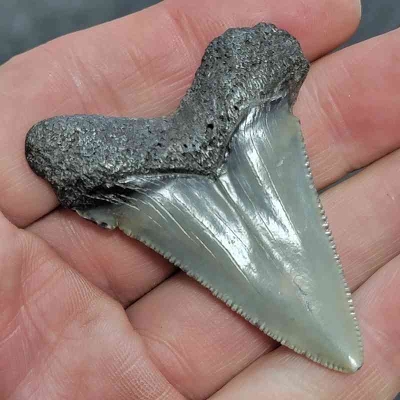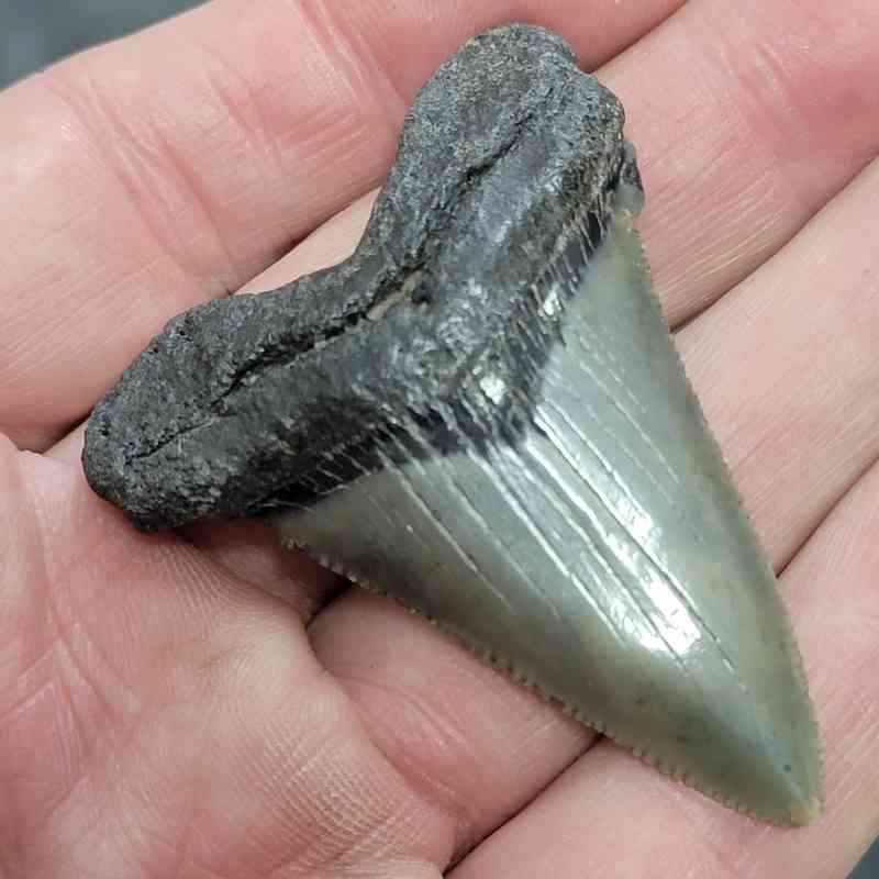 2 1/4″ – Megalodon Shark Tooth with Dark Brown Root with Gray Enamel