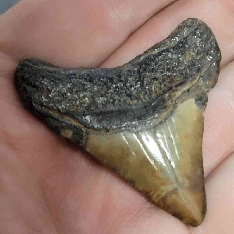 2″ – Megalodon Shark Tooth with Brown Root with Brown Enamel