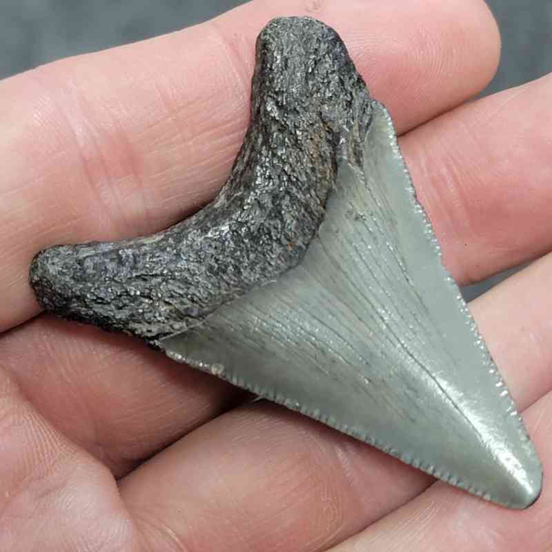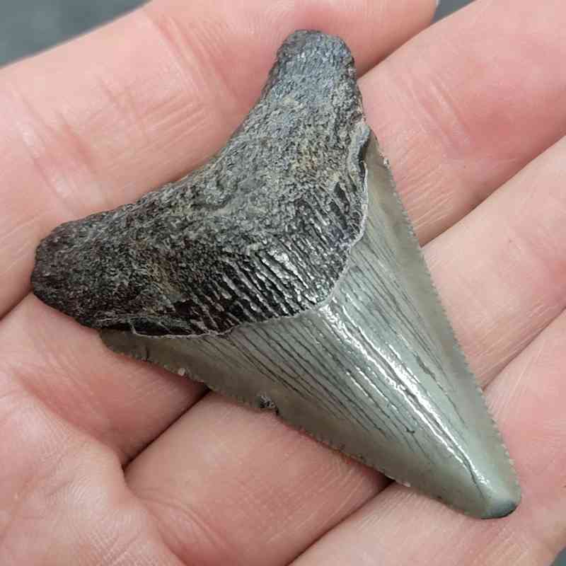 2 1/8″ – Megalodon Shark Tooth with Dark Brown Root with Gray Enamel