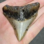 2 7/8″ – Megalodon Shark Tooth with Dark Brown Root with Tan Enamel