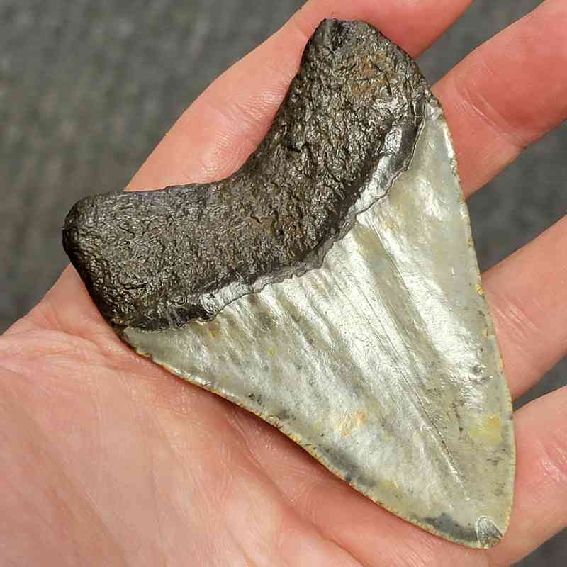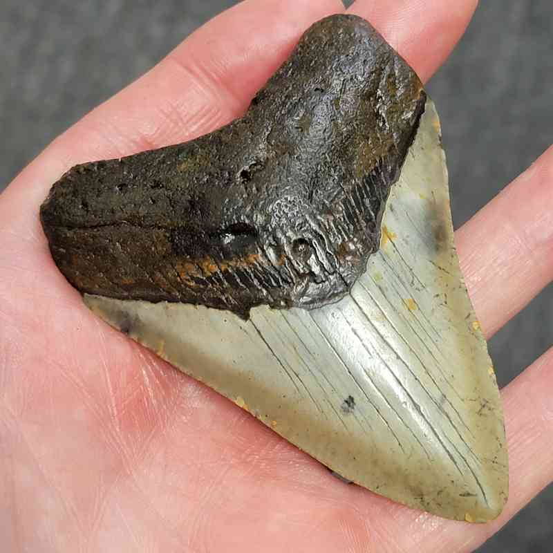 3 1/2″ – Megalodon Shark Tooth with Dark Brown Root with Gray Enamel