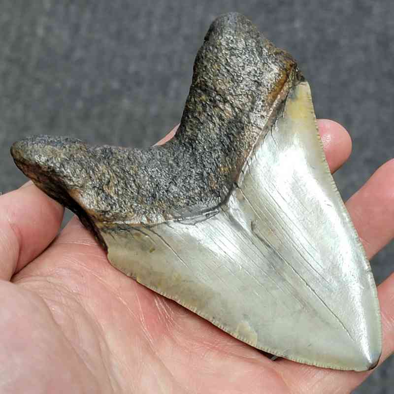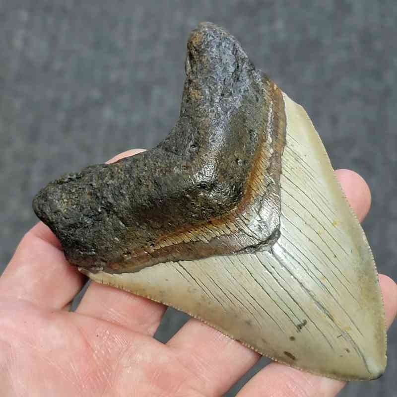 4 1/2+” – Megalodon Shark Tooth with Dark Brown Root with Tan Enamel