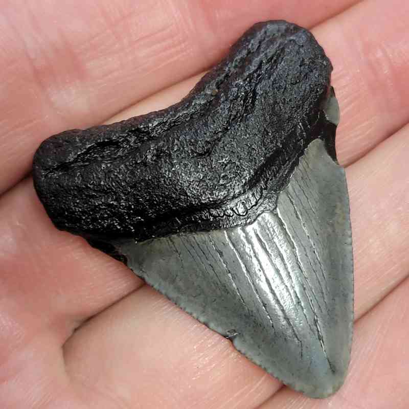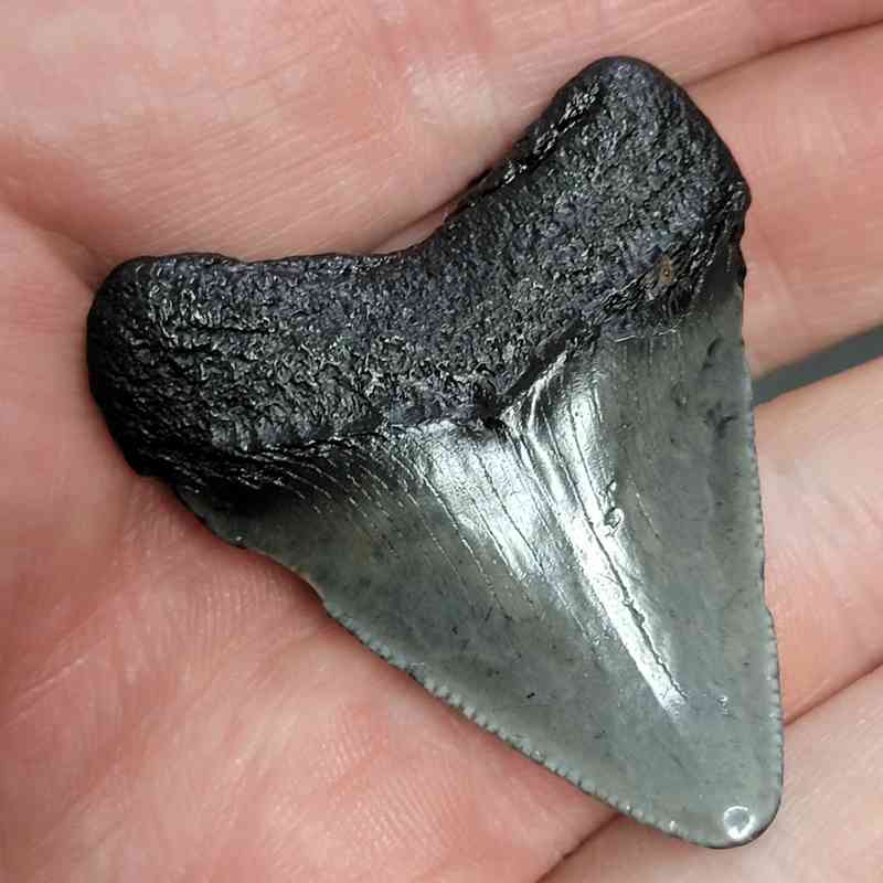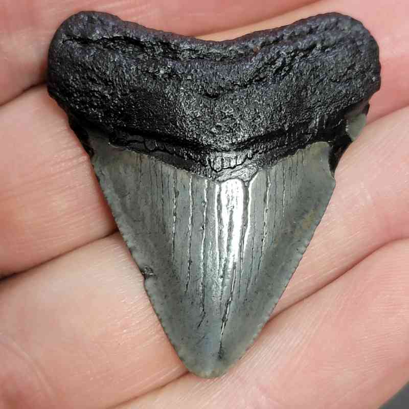 1 3/4″ – Megalodon Shark Tooth with Dark Brown Root with Gray Enamel
