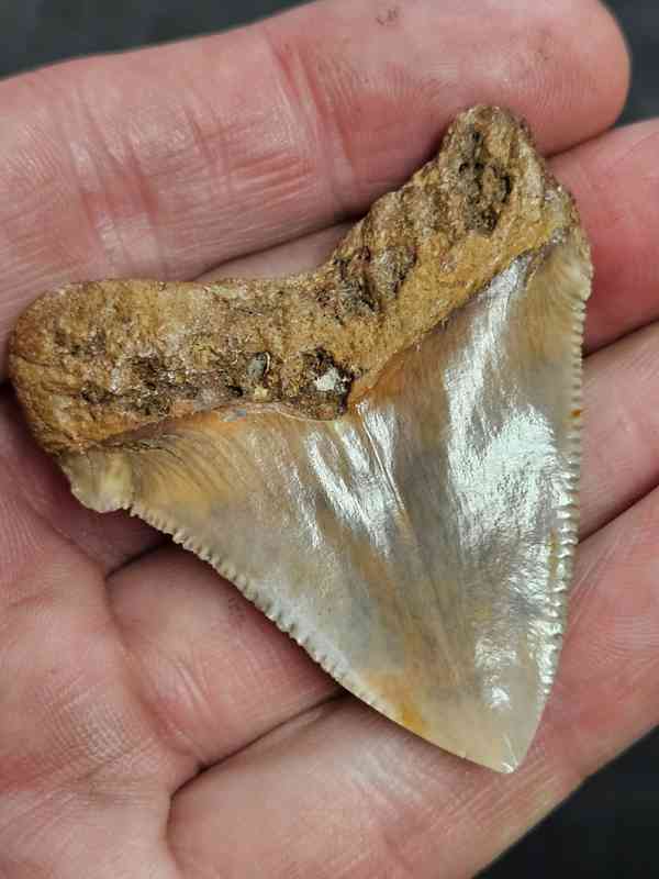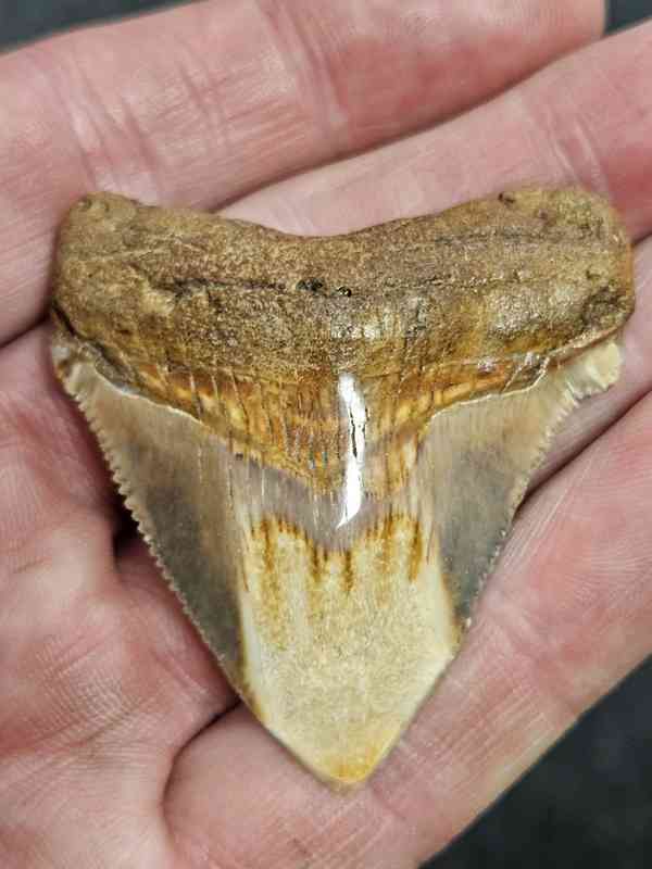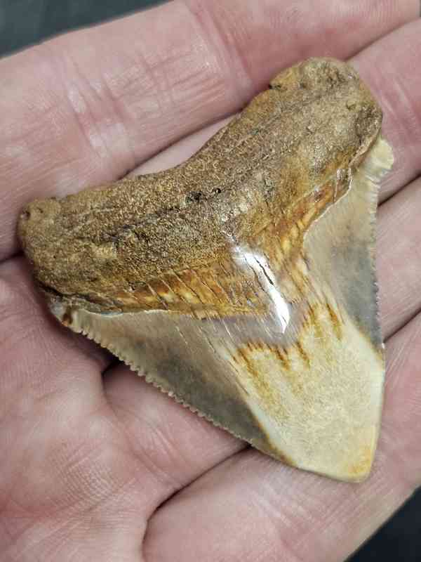 2+” Polished Megalodon Tooth with Tan Root with Tan Enamel – Manager’s Choice!
